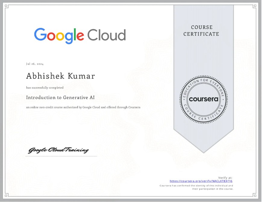Explored foundational concepts of Generative AI, including large language models, prompt engineering, and practical applications of AI in modern software development and content creation.